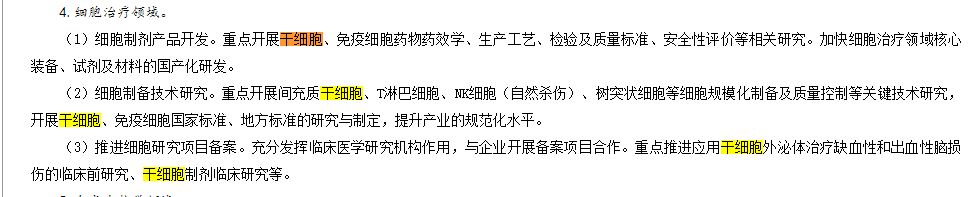 其中明确提出:根据国家有关要求,持续做好细胞治疗临床研究省级初审、备案、监管。支持细胞和基因治疗、罕见病等细分领域发展。